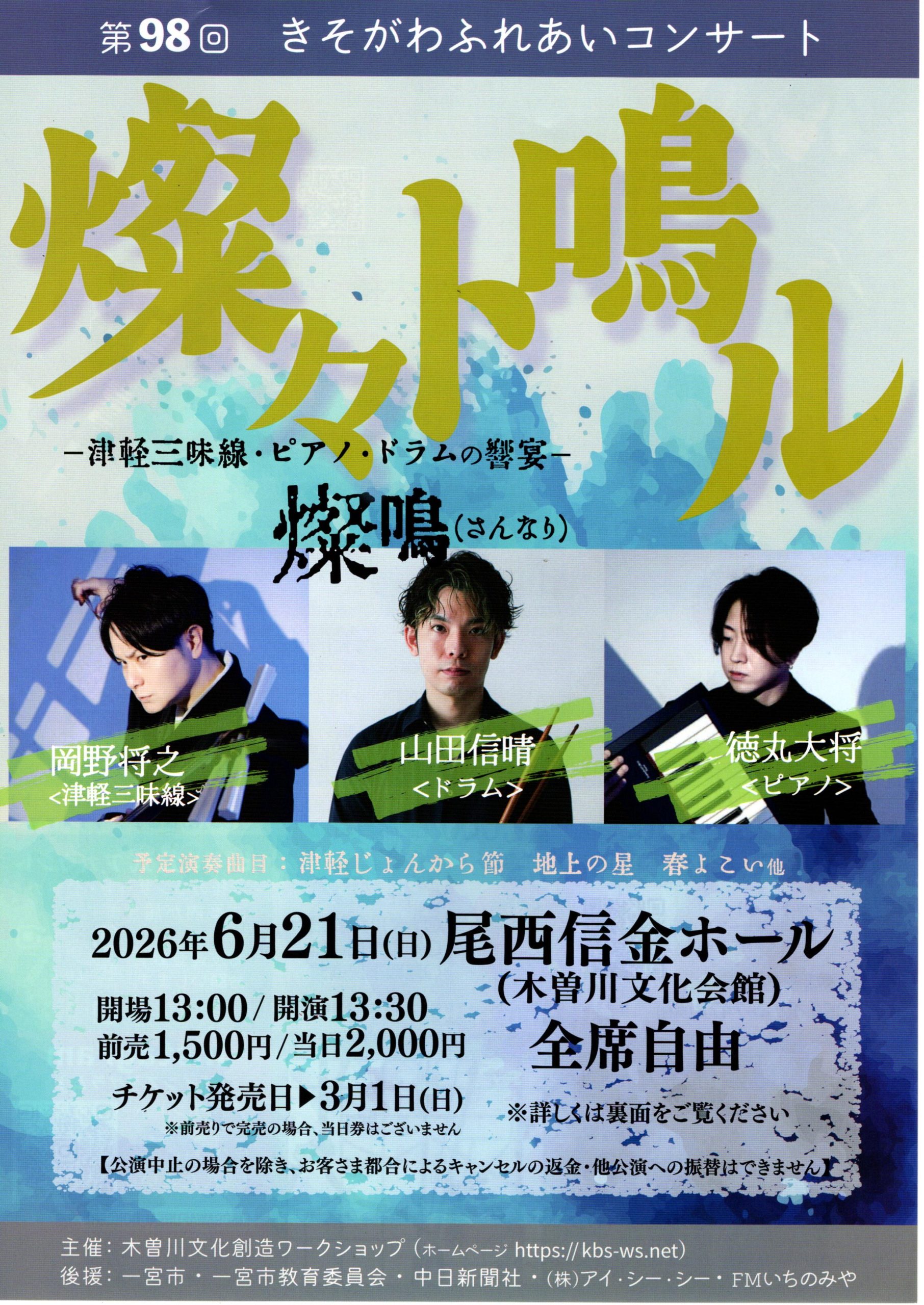 (登録団体からのお知らせ)第98回 きそがわふれあいコンサート【木曽川文化創造ワークショップ】