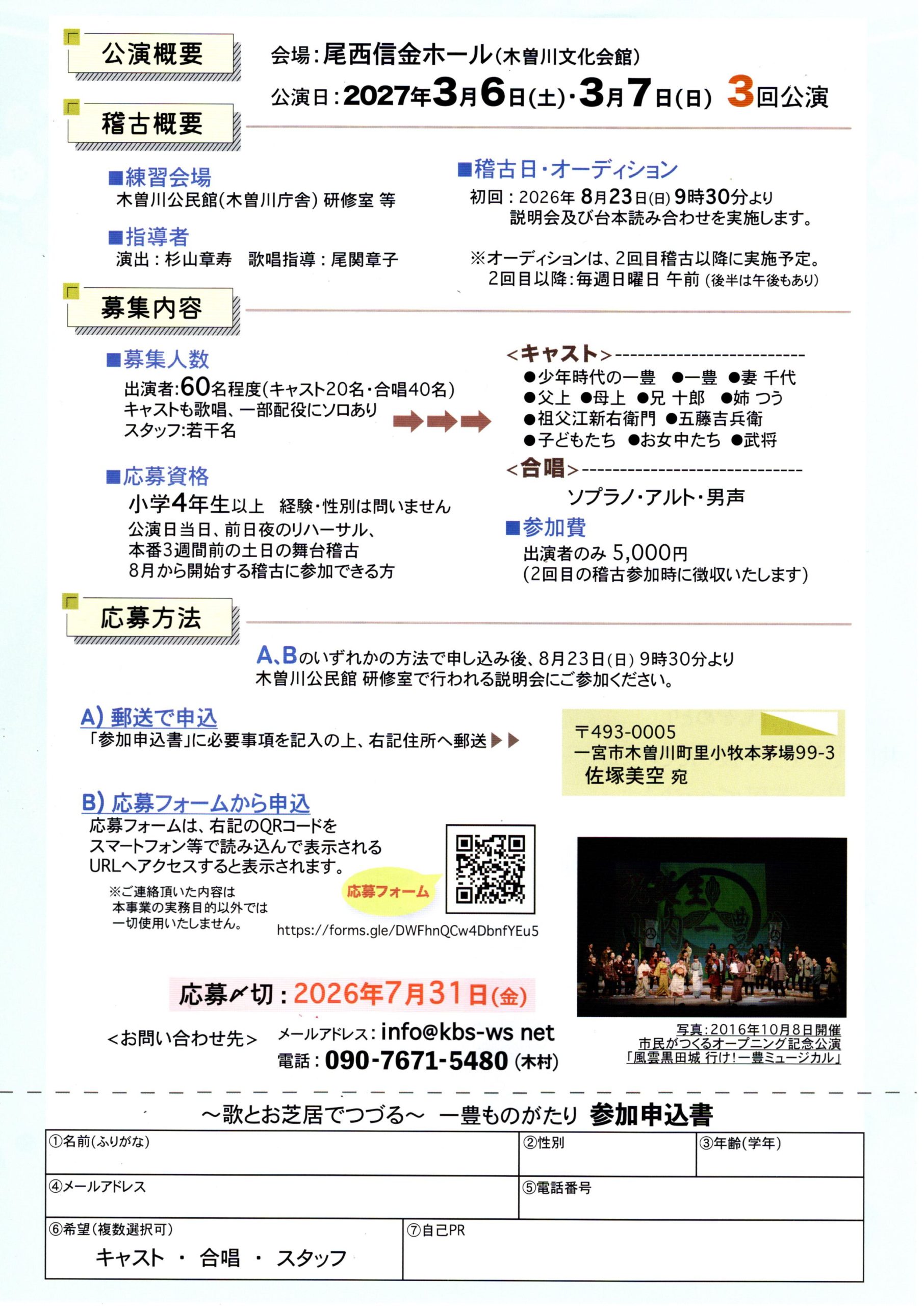 (登録団体からのお知らせ)出演者・スタッフ大募集【木曽川文化創造ワークショップ】