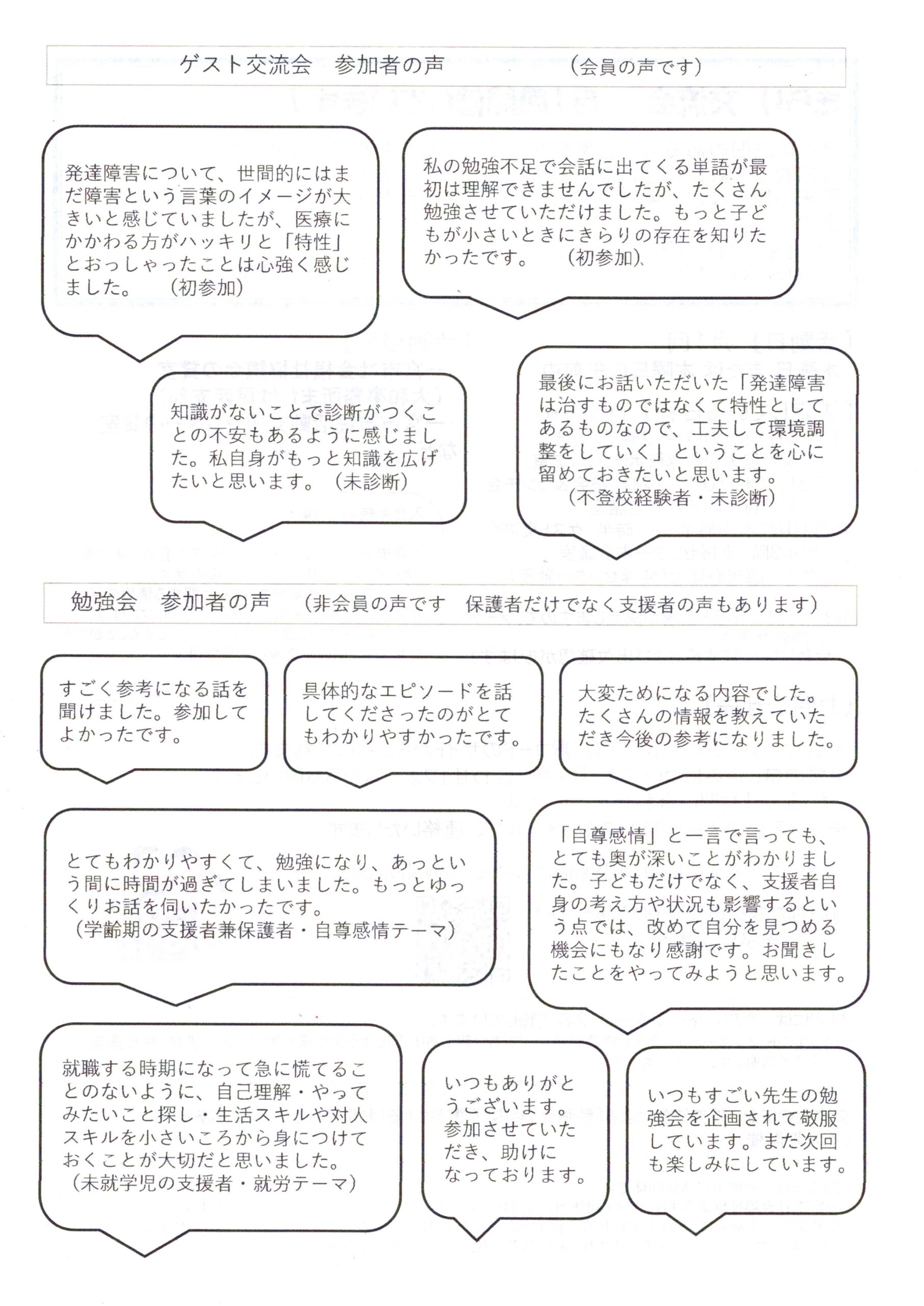 臨床心理士などの発達障害に詳しい専門家がゲストとして同席する月もあります。