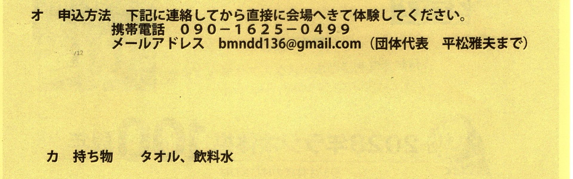 メールアドレス bmndd136@gmail.com(団体代表 平松雅夫まで)