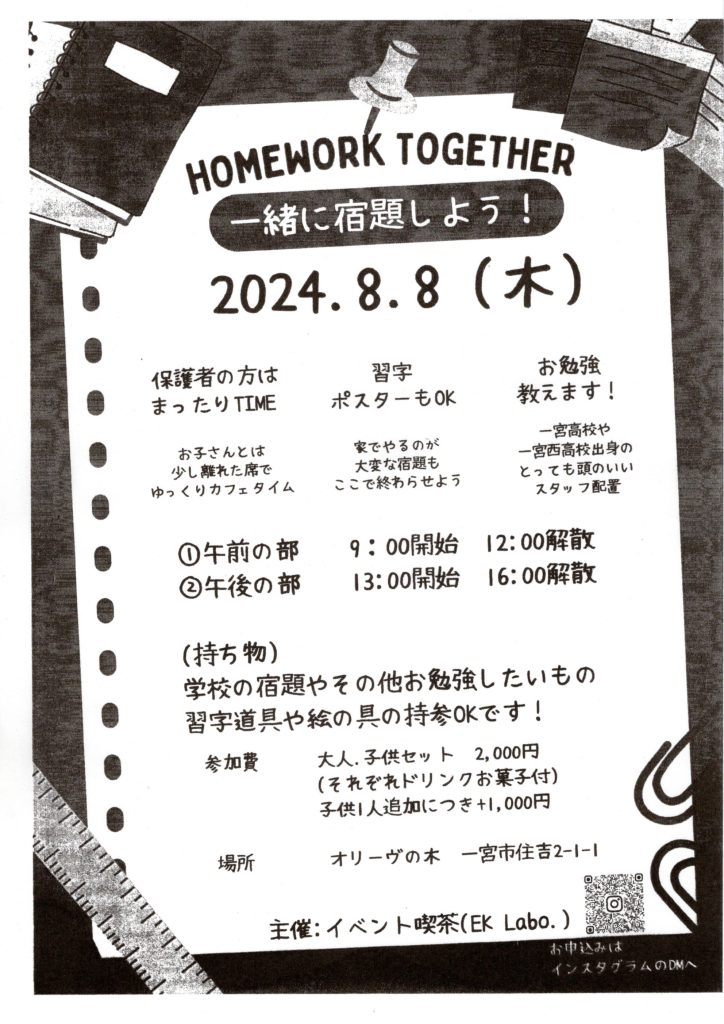 (登録団体からのお知らせ) HOMEWORK TOGETHER【EK Labo.】